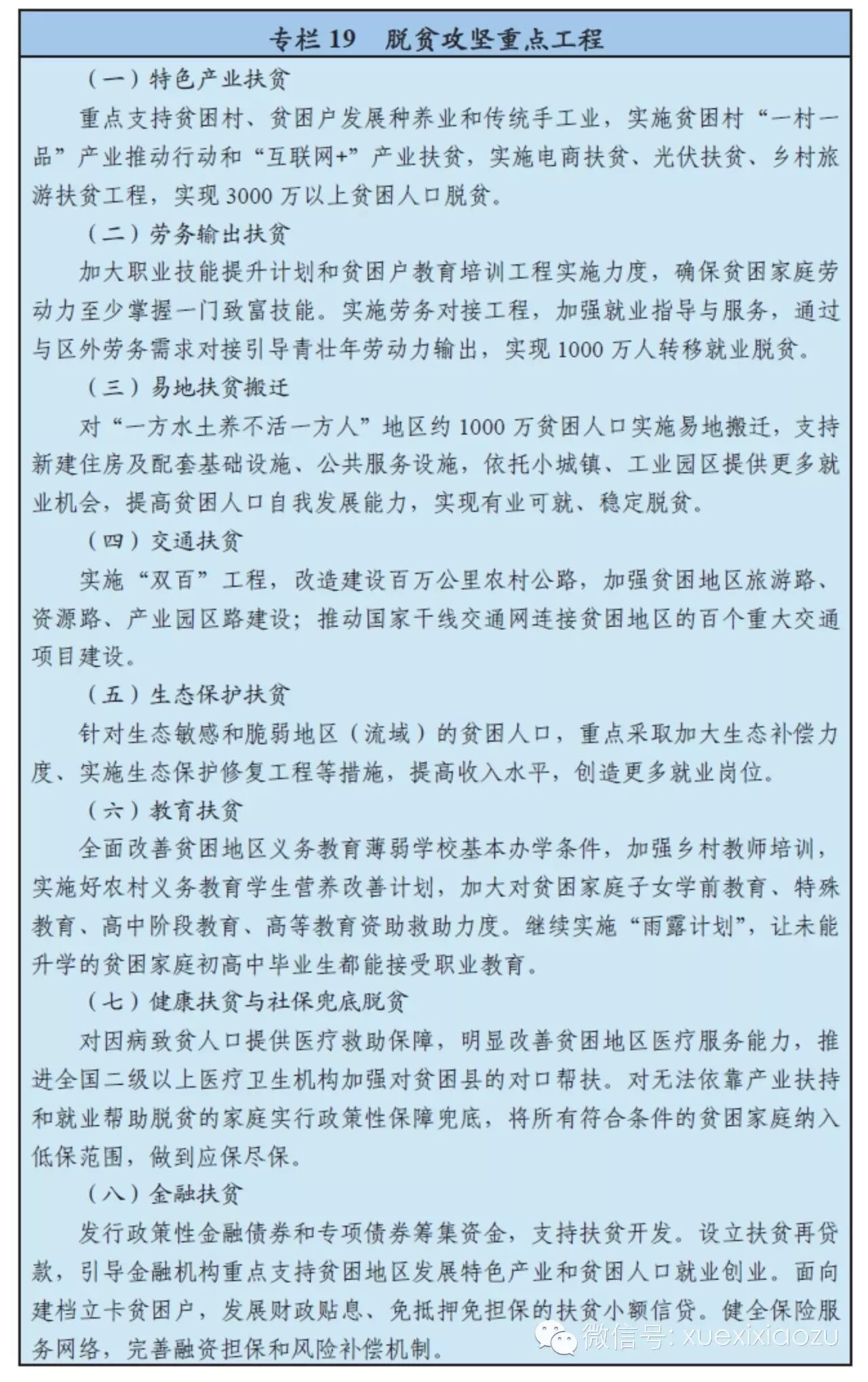 把革命老区、民族地区、边疆地区、集中连片贫困地区作为脱贫攻坚重点,持续加大对集中连片特殊困难地区的扶贫投入力度,增强造血能力,实现贫困地区农民人均可支配收入增长幅度高于全国平均水平,基本公共服务主要领域指标接近全国平均水平。
